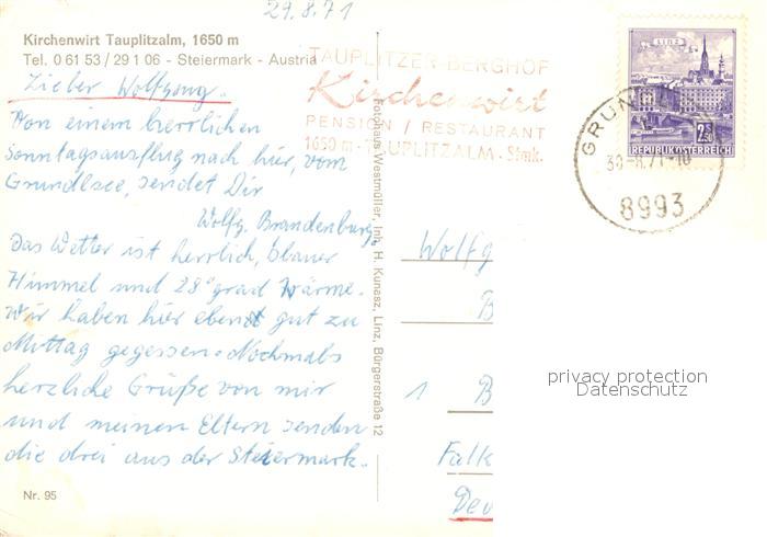 13311617 alte Postkarte Tauplitzalm Kirchenwirt Berghof postalisch gelaufen Erhaltung siehe scans [WerneD78] KatCode: 11390222061245