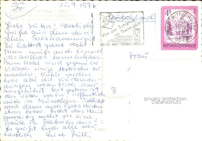 72479827 alte Postkarte Tauplitzalm Theodor Karl Hall Haus am Lawinenstein postalisch gelaufen Erhaltung siehe scans KatCode: 11390222061245