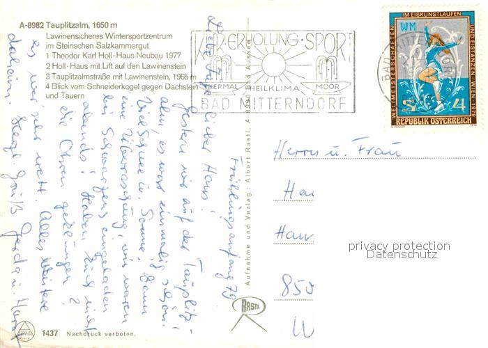 72891097 alte Postkarte Tauplitzalm Theodor Karl Holl Haus Lift Tauplitzalmstrasse Schneiderkogel Dachstein Tauern postalisch gelaufen Erhaltung siehe scans [WerneD78] KatCode: 11390222061245