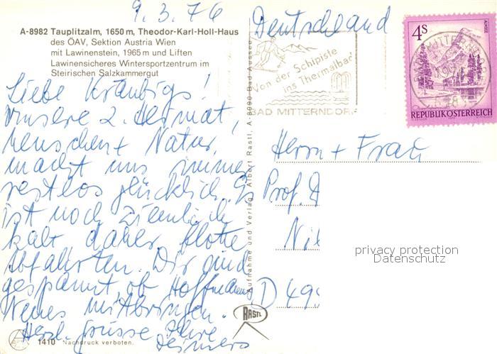73072921 alte Postkarte Tauplitzalm Theodor Karl Holl Haus Winter postalisch gelaufen Erhaltung siehe scans [KathaD81] KatCode: 11390222061245