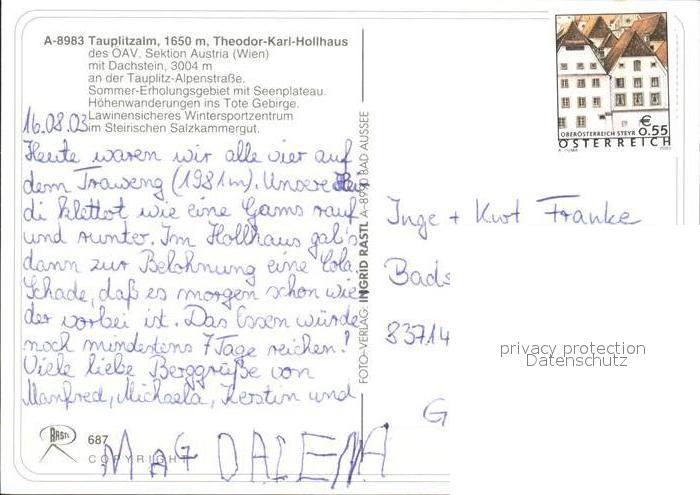 71920930 Tauplitzalm Theodor Karl Hollhaus mit Dachstein postalisch nicht gelaufen Erhaltung siehe scans KatCode: 11390222061245