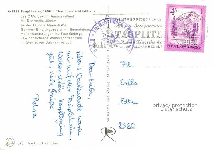 72723909 alte Postkarte Tauplitzalm Theodor Karl Hollhaus postalisch gelaufen Erhaltung siehe scans [LiesaD40] KatCode: 11390222061245