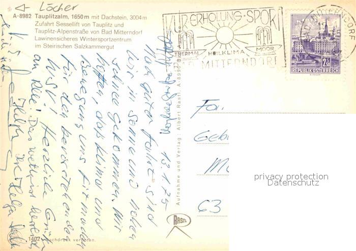 72772528 alte Postkarte Tauplitzalm Winterpanorama Skigebiet mit Dachstein postalisch gelaufen Erhaltung siehe scans [FriedD77] KatCode: 11390222061245