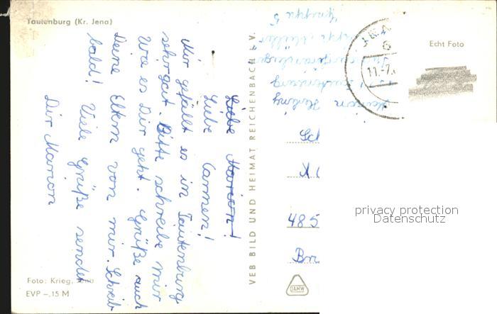72595644 alte Postkarte Tautenburg Teilansicht mit Burgruine postalisch gelaufen Erhaltung siehe scans [FriedD77] KatCode: 11110016074096