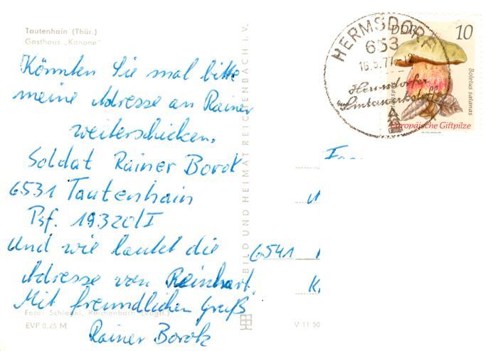 73879797 alte Postkarte Tautenhain Gasthaus Kanone postalisch gelaufen Erhaltung siehe scans [FriedD77] KatCode: 11110016074098