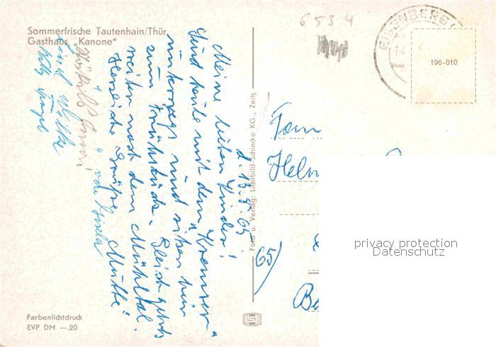 72749717 alte Postkarte Tautenhain Gasthaus Kanone postalisch gelaufen Erhaltung siehe scans [KathaD81] KatCode: 11110016074098