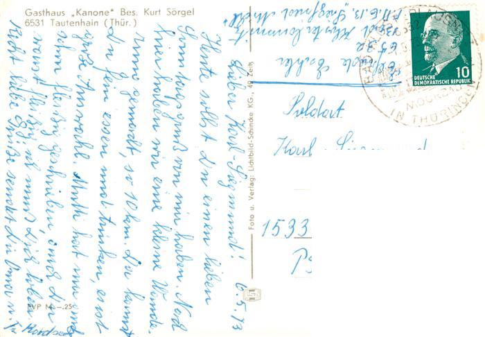 73887126 alte Postkarte Tautenhain Gasthaus Kanone postalisch gelaufen Erhaltung siehe scans [WerneD78] KatCode: 11110016074098