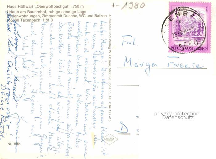 12869997 alte Postkarte Taxenbach Haus Hoellwart Oberwolfbachgut postalisch gelaufen Erhaltung siehe scans [PaolaD17] KatCode: 11390322050622