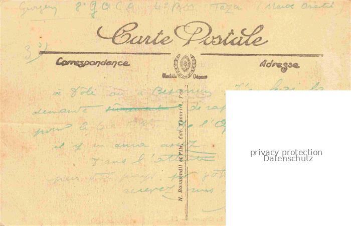 74124976 TAZA Maroc Vue à travers les oliviers postalisch nicht gelaufen Erhaltung siehe scans [FriedD77] KatCode: 18300