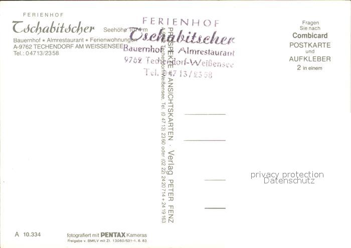 71932105 Techendorf Weissensee Ferienhof Tschabitscher Alpenpanorama im Sommer postalisch nicht gelaufen Erhaltung siehe scans KatCode: 11390