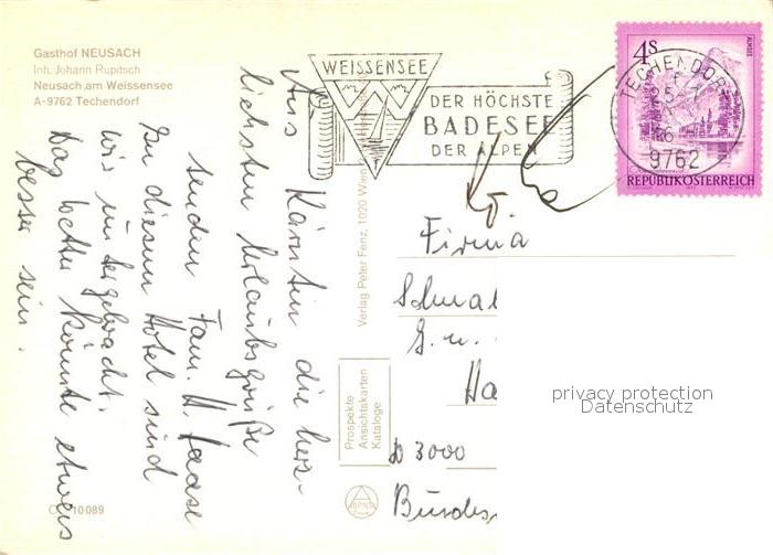12934771 alte Postkarte Techendorf Weissensee Gasthof Neusach postalisch gelaufen Erhaltung siehe scans [NatalD47] KatCode: 11390