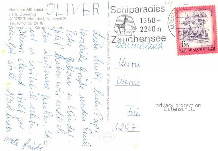 72815708 alte Postkarte Techendorf Weissensee Haus am Muehlbach postalisch gelaufen Erhaltung siehe scans [AndreD76] KatCode: 11390
