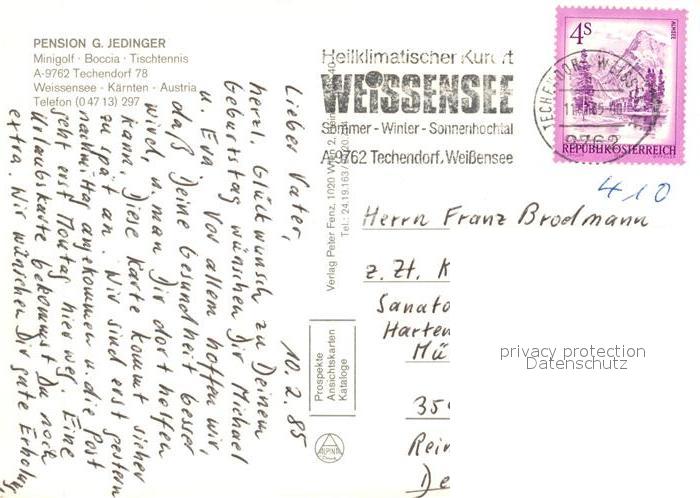 73209816 alte Postkarte Techendorf Weissensee Pension Sportcafe Jedinger Minigolf postalisch gelaufen Erhaltung siehe scans [FriedD77] KatCode: 11390