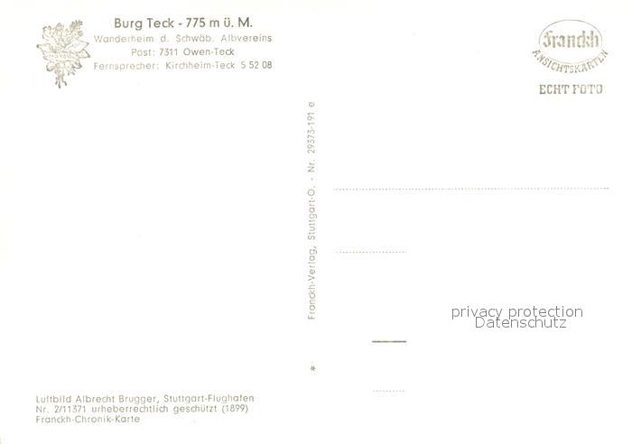 73689721 alte Postkarte Teck Burg Teck Fliegeraufnahme postalisch gelaufen Erhaltung siehe scans [WerneD78] KatCode: 11110008116033