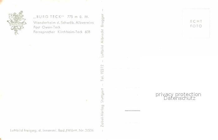 72822523 Teck Burg Teck Wanderheim des Schwaebischen Albvereins Fliegeraufnahme postalisch nicht gelaufen Erhaltung siehe scans [FriedD77] KatCode: 11110008116033