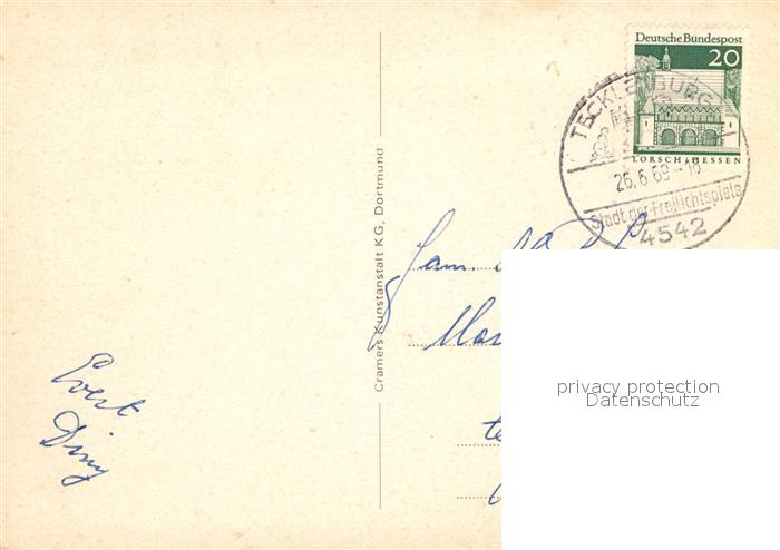 72936541 alte Postkarte Tecklenburg Steinfurt NRW Blick von der Burgmauer Kirche Ziehbrunnen Hexenkueche Jugendherberge Bismarckturm Wierturm Ruine Burgtor postalisch gelaufen Erhaltung siehe scans [FriedD77] KatCode: 11110005566088