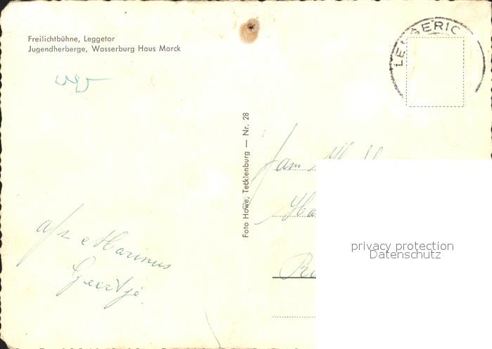 72305246 alte Postkarte Tecklenburg Steinfurt NRW Freilichtbuehne Leggetor Jugendherberge Wasserburg Haus-Marck postalisch gelaufen Erhaltung siehe scans KatCode: 11110005566088
