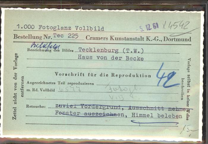 41543353 Tecklenburg Steinfurt NRW Haus von der Becke postalisch gelaufen Erhaltung siehe scans Alte Ansichtskarte Postkarte alte Postkarte hz_L Katcode 11110005566088