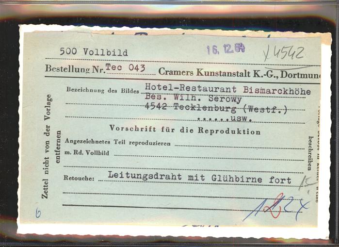 41543572 Tecklenburg Steinfurt NRW Hotel Restaurant Bismarckhoehe Gartenterrasse Reproduktionsvorschrift postalisch nicht gelaufen Erhaltung siehe scans Alte Ansichtskarte Postkarte hz_L Katcode 11110005566088