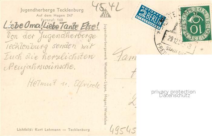 73709774 Tecklenburg Steinfurt NRW Jugendherberge Aussenansicht Fachwerkhaus postalisch gelaufen Erhaltung siehe scans [LiesaD40] alte Postkarte Lies Katcode 11110005566088