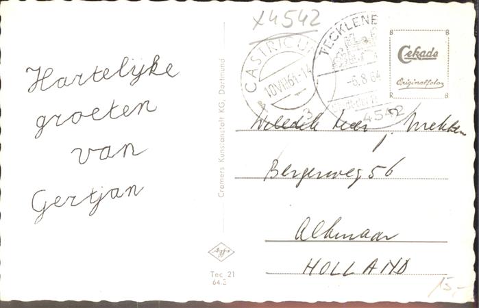 41543345 Tecklenburg Steinfurt NRW Landkarte Burgtor Jugendherberge Haus-Mark Wierturm Freilichtbuehne postalisch gelaufen Erhaltung siehe scans Alte Ansichtskarte Postkarte alte Postkarte hz_L Katcode 11110005566088