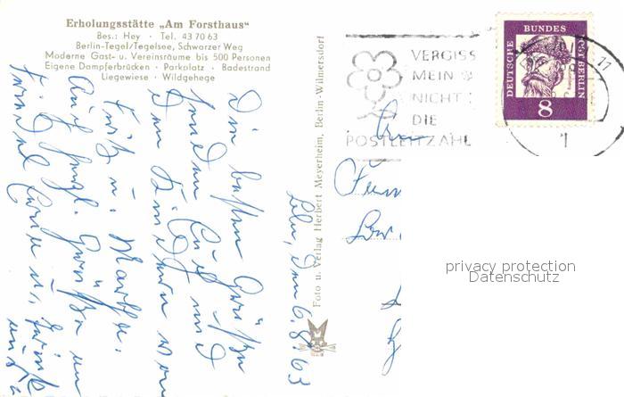 72754355 alte Postkarte Tegel Restaurant Am Forsthaus Gartenterrasse am Tegelsee postalisch gelaufen Erhaltung siehe scans [FriedD77] KatCode: 11110011000000