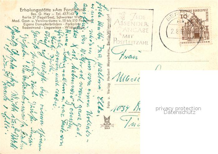 72972528 alte Postkarte Tegel Restaurant Am Forsthaus postalisch gelaufen Erhaltung siehe scans [PaolaD17] KatCode: 11110011000000