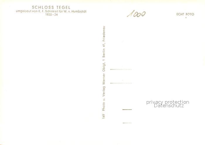 73565281 Tegel Schloss Wilhelm von Humboldt Schinkel postalisch nicht gelaufen Erhaltung siehe scans [KathaD81] KatCode: 11110011000000