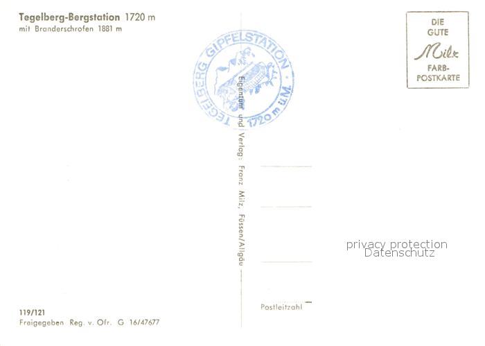 73009211 Tegelberg Bergstation mit Branderschrofen postalisch nicht gelaufen Erhaltung siehe scans [WerneD78] KatCode: 11110009777169