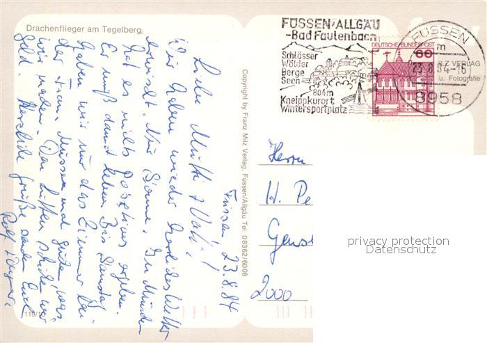 73101138 alte Postkarte Tegelberg Drachenflieger Panorama postalisch gelaufen Erhaltung siehe scans [WerneD78] KatCode: 11110009777169