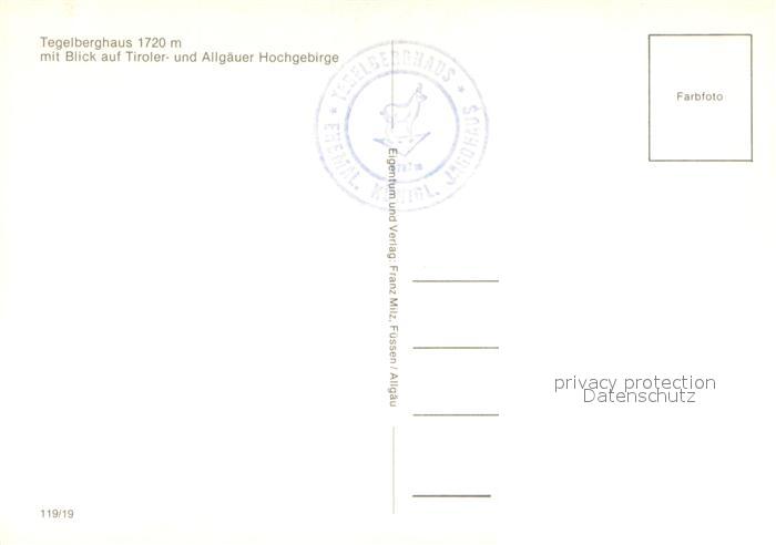 73721017 Tegelberghaus 1720m Allgaeu Terrasse mit Tiroler und Allgaeuer Hochgebirge postalisch nicht gelaufen Erhaltung siehe scans [WerneD78] KatCode: 11110009777129