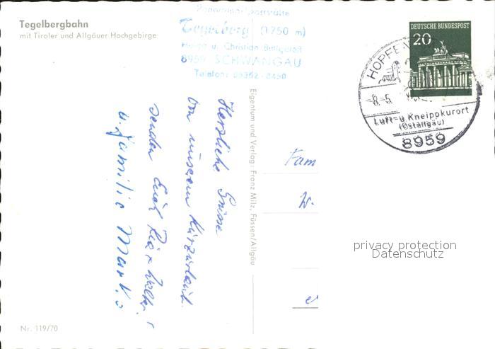 72460610 alte Postkarte Tegelberghaus mit Seilbahn postalisch gelaufen Erhaltung siehe scans KatCode: 11110009777129