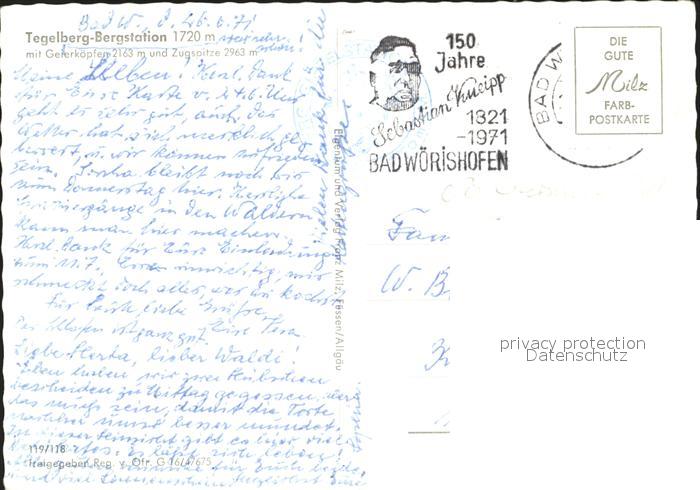 72124855 alte Postkarte Tegelberghaus postalisch gelaufen Erhaltung siehe scans KatCode: 11110009777129
