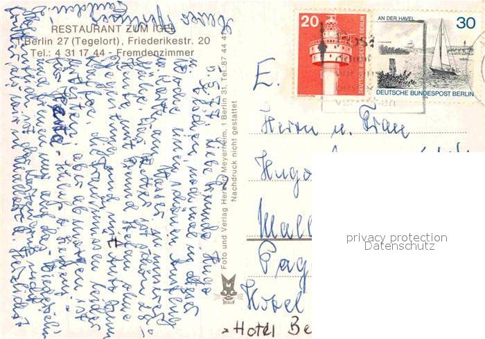 72759447 alte Postkarte Tegelort Restaurant zum Igel am Tegeler See Schwaene Bootsanleger postalisch gelaufen Erhaltung siehe scans [FriedD77] KatCode: 11110011000000