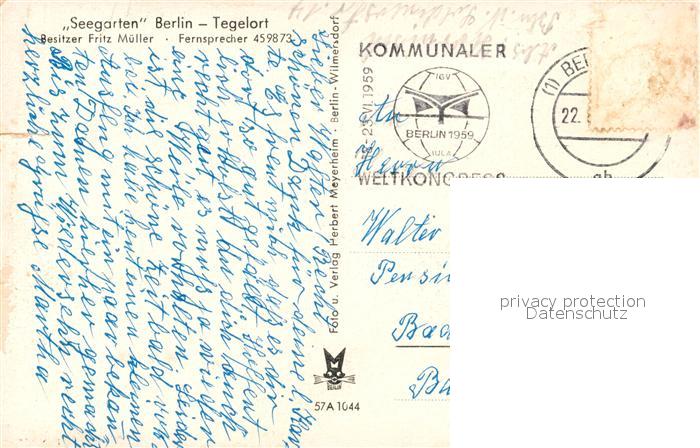 43371015 alte Postkarte Tegelort Seegarten Bootsteg postalisch gelaufen Erhaltung siehe scans [LiesaD40] KatCode: 11110011000000