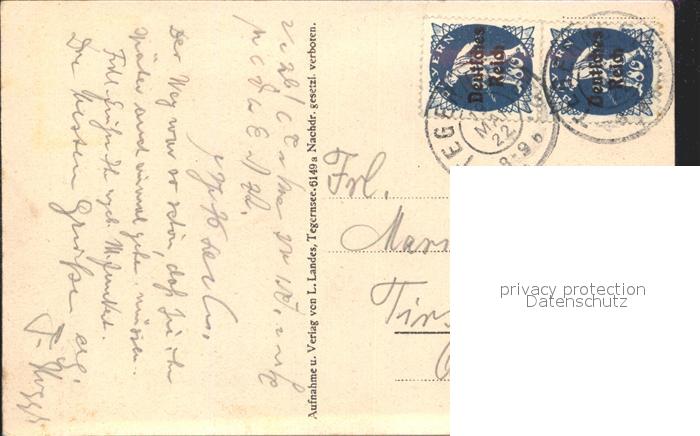 72134837 alte Postkarte Tegernsee Bayern postalisch gelaufen Erhaltung siehe scans KatCode: 11110009182132