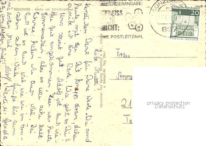 72105390 alte Postkarte Tegernsee Bayern Am SchlossCafe postalisch gelaufen Erhaltung siehe scans KatCode: 11110009182132