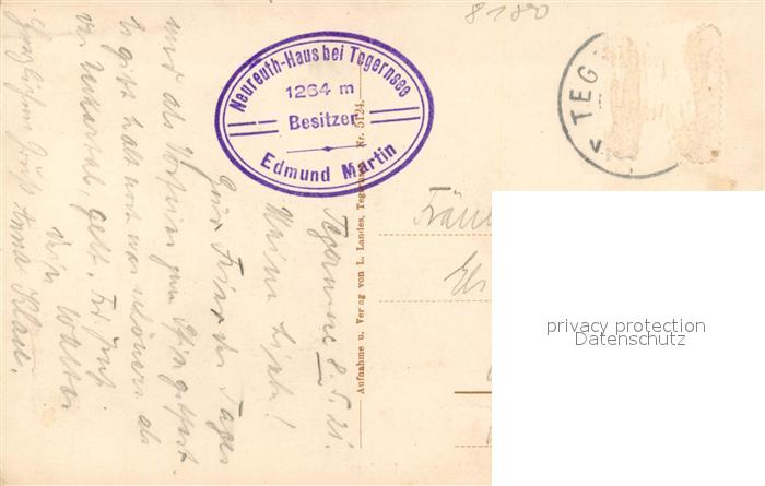 43496202 Tegernsee Bayern Aussicht von der Neureut Alpenpanorama postalisch gelaufen Erhaltung siehe scans [FriedD77] alte Postkarte Frie Katcode 11110009182132