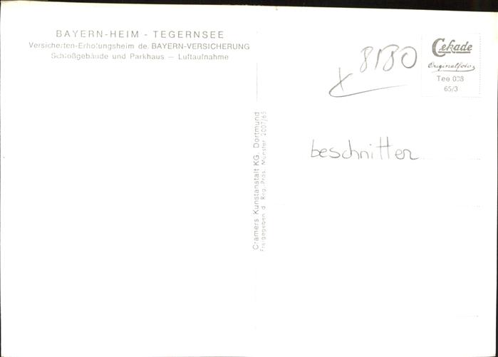 41396668 Tegernsee Bayern Bayern Heim Schloss Fliegeraufnahme postalisch nicht gelaufen Erhaltung mit Maengel Alte Ansichtskarte Postkarte hz_F Katcode 11110009182132