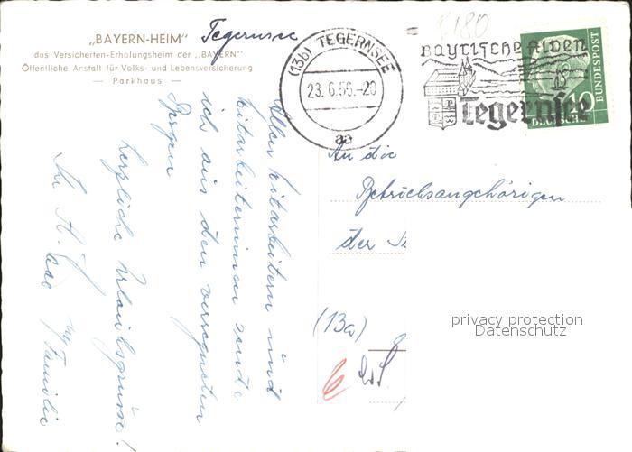 72008522 alte Postkarte Tegernsee Bayern Bayern-Heim postalisch gelaufen Erhaltung siehe scans KatCode: 11110009182132