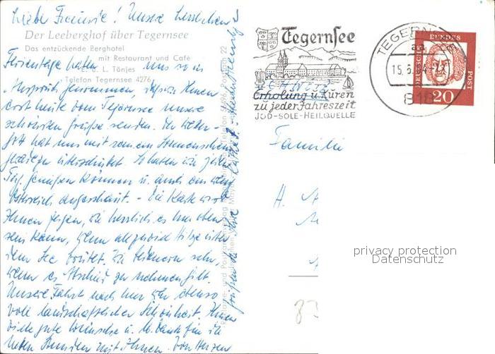 72572563 alte Postkarte Tegernsee Bayern Der Leeberghof Berghotel postalisch gelaufen Erhaltung siehe scans [LiesaD40] KatCode: 11110009182132