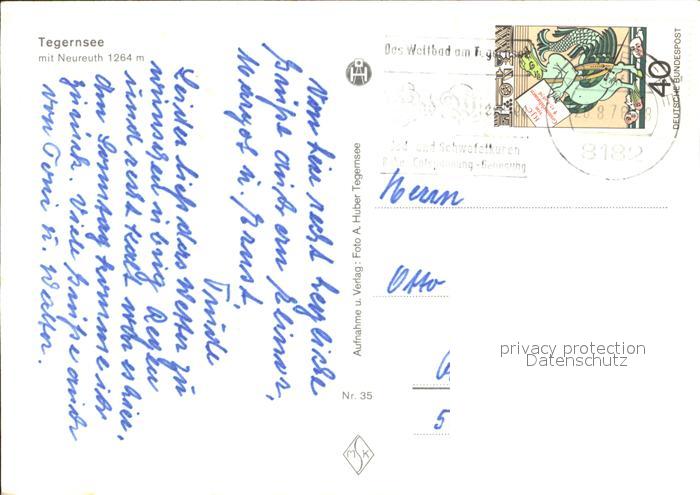 71988009 alte Postkarte Tegernsee Bayern Fliegeraufnahme mit Neureuth postalisch gelaufen Erhaltung siehe scans KatCode: 11110009182132