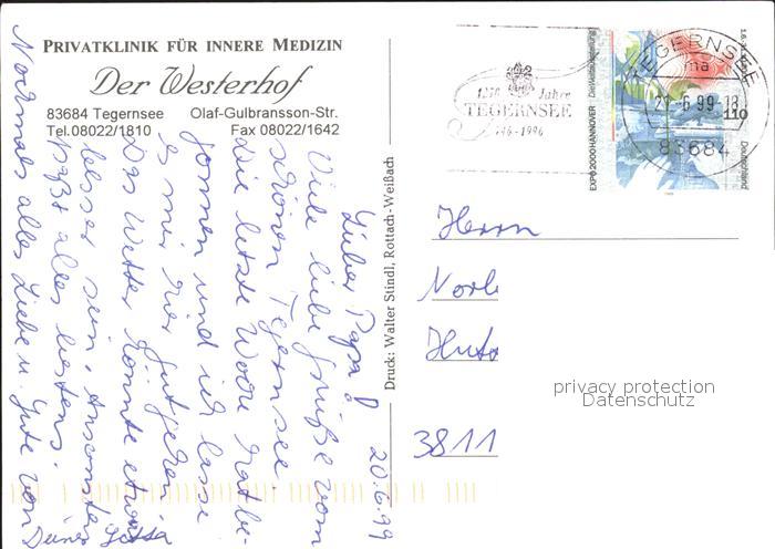 71847561 alte Postkarte Tegernsee Bayern Fliegeraufnahme Privatklinik Innere Medizin Der Westerhof postalisch gelaufen Erhaltung siehe scans KatCode: 11110009182132