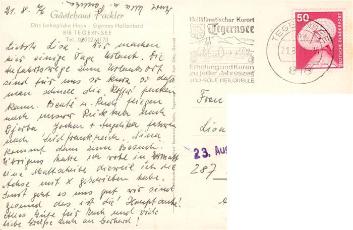 73908093 Tegernsee Bayern Gaestehaus Fackler Gastraeume postalisch gelaufen Erhaltung siehe scans [WerneD78] alte Postkarte Wern Katcode 11110009182132