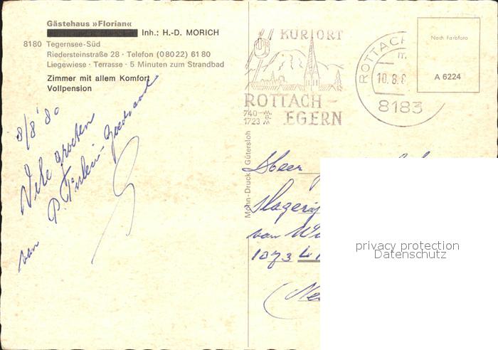 72495907 alte Postkarte Tegernsee Bayern Gaestehaus Florian postalisch gelaufen Erhaltung siehe scans KatCode: 11110009182132