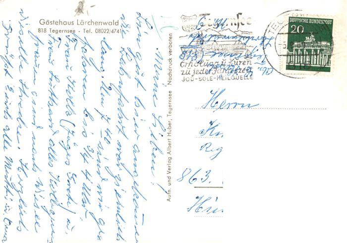 73916480 Tegernsee Bayern Gaestehaus Laerchenwald postalisch gelaufen Erhaltung siehe scans [WerneD78] alte Postkarte Wern Katcode 11110009182132