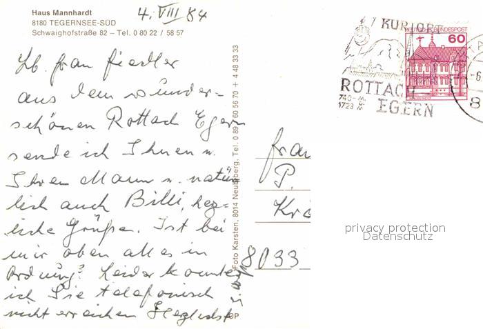 72663218 alte Postkarte Tegernsee Bayern Haus Mannhardt postalisch gelaufen Erhaltung siehe scans [NatalD47] KatCode: 11110009182132