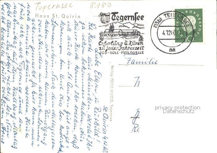 72467602 alte Postkarte Tegernsee Bayern Haus Sankt Quirin postalisch gelaufen Erhaltung siehe scans KatCode: 11110009182132