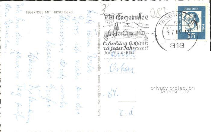 72312759 alte Postkarte Tegernsee Bayern Hirschberg postalisch gelaufen Erhaltung siehe scans KatCode: 11110009182132