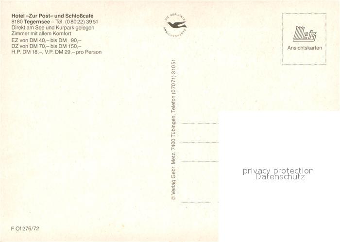 73722224 Tegernsee Bayern Hotel Zur Post u. Schlosscafe Schwaene postalisch nicht gelaufen Erhaltung siehe scans [LiesaD40] Lies Katcode 11110009182132